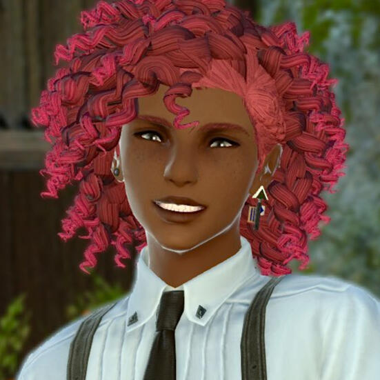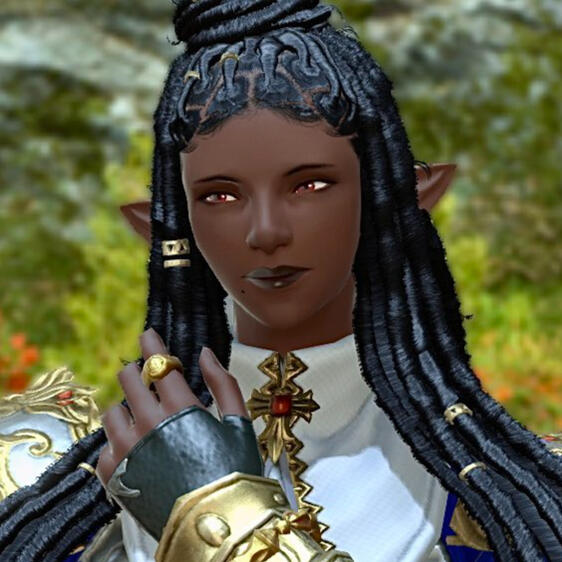 Run for your children, for your sisters and brothers-25 | 5'10" | They/Them | Nonbinary lesbian | Highlander | Monk |Imani was adopted by Zoren as a child. As an adult, they are a strong member of Ada's guild and an expedition leader. They are a teacher with an upbeat, cheerful personality, but a no nonsense attitude when it comes to combat. They are normally against things leading to violence, but if it comes to it, Imani will quickly incapacitate an opponent to protect those around them.Imani is an easy person to get along with, and most people would describe them as somebody who can light up the room with a contagious laugh. They do, however, constantly deal with the trauma of losing the majority of their adoptive siblings and one of their fathers during the calamity. Their survivor's guilt is the most palpable whenever their remaining adoptive father, Zoren, brings up the past, or when somebody in their care does something reckless. They tend to take on a grim expression and become incredibly resistant to discussion on the topic. Imani thinks of their lost family members constantly, but tries to put on a calm and brave face for those around them, especially their students.The only person who knows the full extent of this is their wife, Li hua. At first, most people think Imani is a person who doesn't really experience many troubles, but this could not be further from the truth. Li hua tries to remind her to slow down--to take a break, and to allow themself to feel the negative emotions that often plague them.Their upbeat personality isn't entirely a façade, though. They do find joy in educating and in goldsmithing, but for the people that know them well, it's easy to see the gloom hiding under the cheerful smile. They love kids and can often be found playing with them. They are, of course, the most popular teacher at the craftworks school they teach at in Mor Dhona.